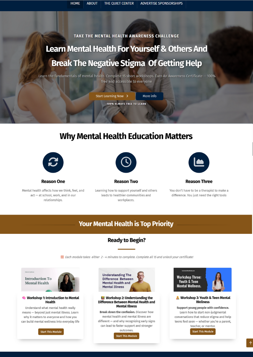 In today’s world, mental health awareness is more important than ever. Whether you’re a private practice, nonprofit, school, or community organization, Learn Mental Health Today gives you a turnkey solution to launch or expand your outreach programs—online and in person. We make it simple,  and powerful.